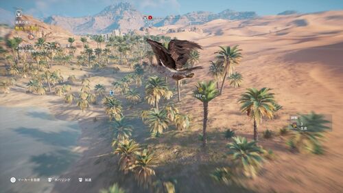 Tebasakikunです。 前回の続きサブクエストの装具の強化をやっていきます。セヌ(鷲)を操作して胸当ての材料であるソフトレザーを集める所から始まります。方法は二通り、野生動物を狩るか、そのアイテムを持っている敵から奪うか。 セヌを使ってソフトレザ…